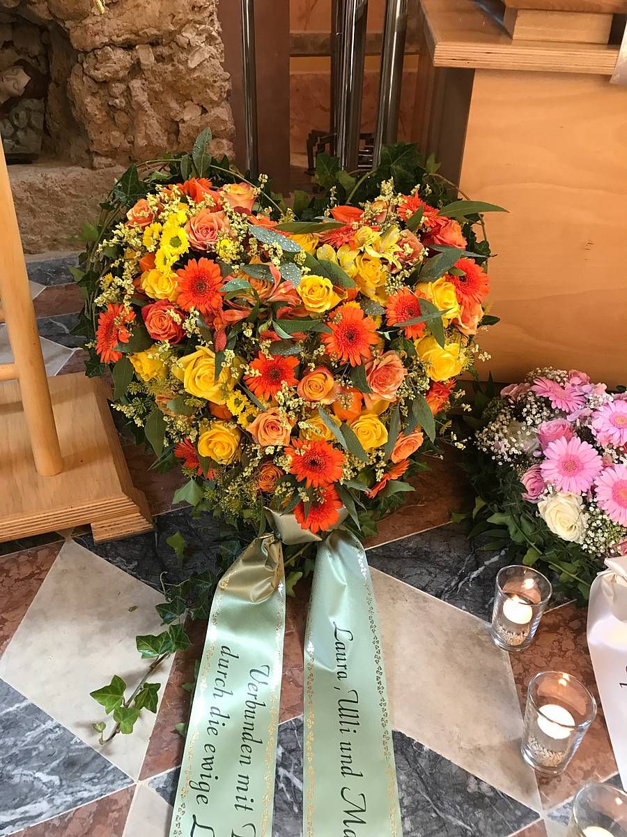 Der Herzkranz ist ein kraftvolles Symbol der Liebe und Verbundenheit. Er drückt aus, dass die Liebe zu einem geliebten Menschen niemals endet, selbst wenn sie physisch nicht mehr bei uns ist. Unsere Herzkränze werden mit großer Sorgfalt und Hingabe gefertigt, wobei wir hochwertige, frische Blumen verwenden, die die Schönheit und Einzigartigkeit des Lebens widerspiegeln. Jedes Arrangement wird individuell gestaltet, um die Persönlichkeit und die besonderen Momente des Verstorbenen zu ehren. Ob in sanften Pastelltönen oder leuchtenden Farben – ein Herzkranz ist eine liebevolle Geste, die Trost spendet und die Erinnerung lebendig hält.